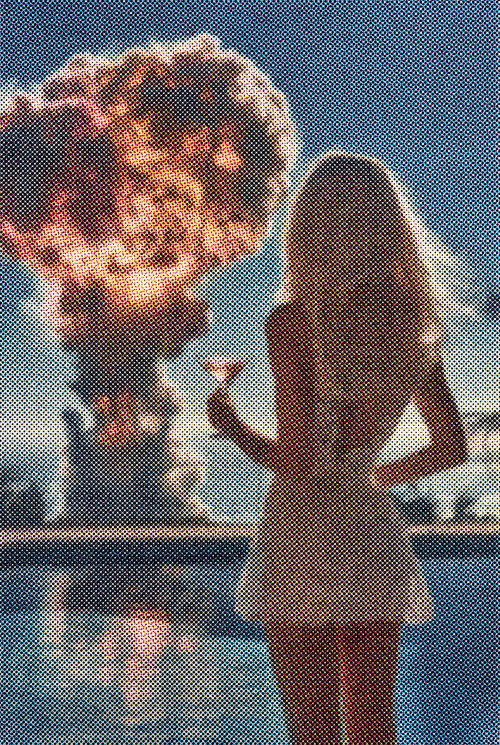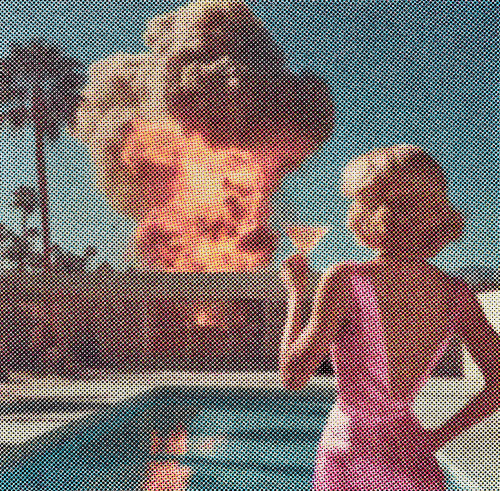 The fire is a metaphor for that feeling of destruction or rage or grief or loss, and the ladies looking at the fire, they're not scared. They're not even probably worried. They're just like, yes, this is the moment in time. This is what it is, and some of them have poured a martini…that tends to be me.
